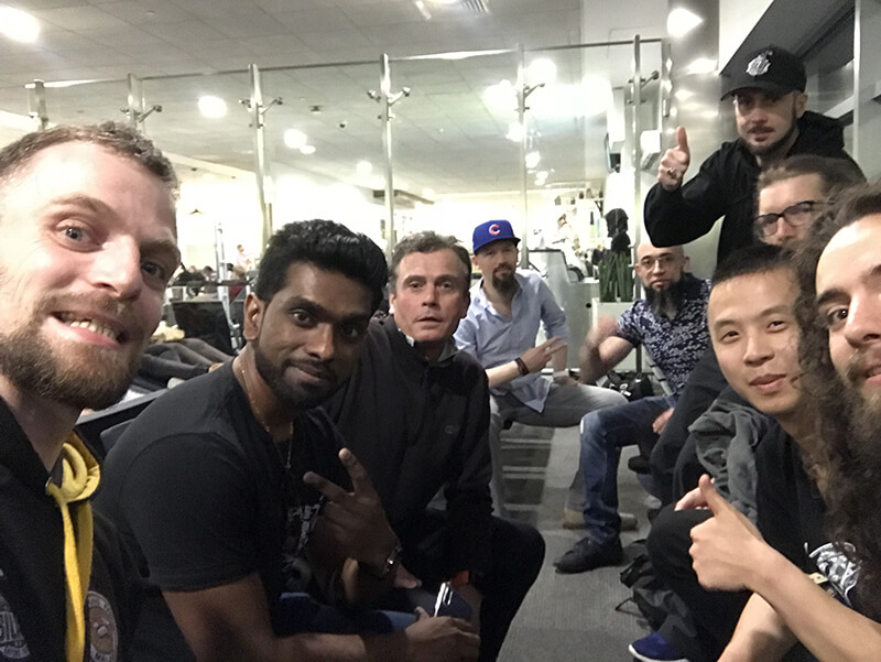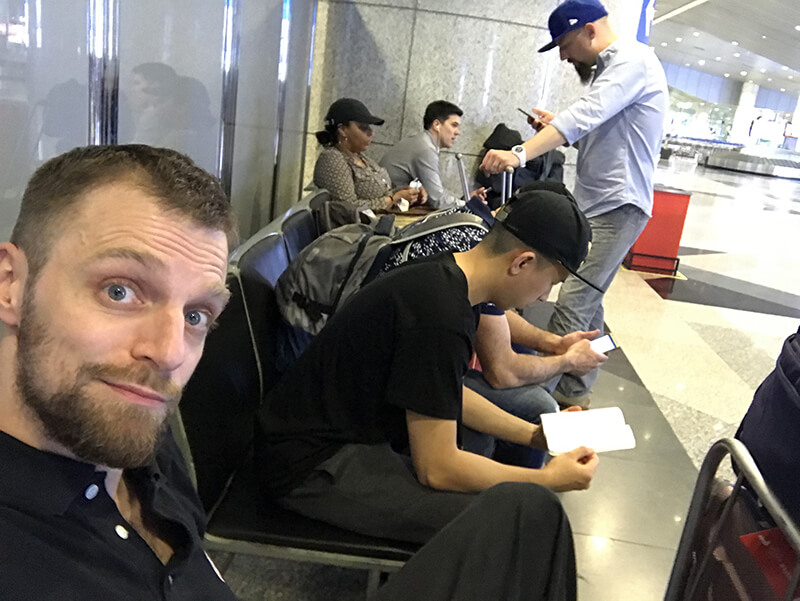 Notre avion décollant à 10h20 le matin, nous avions prévu de nous retrouver à l’aéroport CDG à 7h30. Nous avions également créé un groupe WhatsApp pour que nous puissions tous nous tenir au courant de qui en était où. Certains étaient manifestement très pressés de partir car nous avons reçu les premiers messages d’Alfred et Jérôme nous annonçant qu’ils était sur place vers 6h30 !
