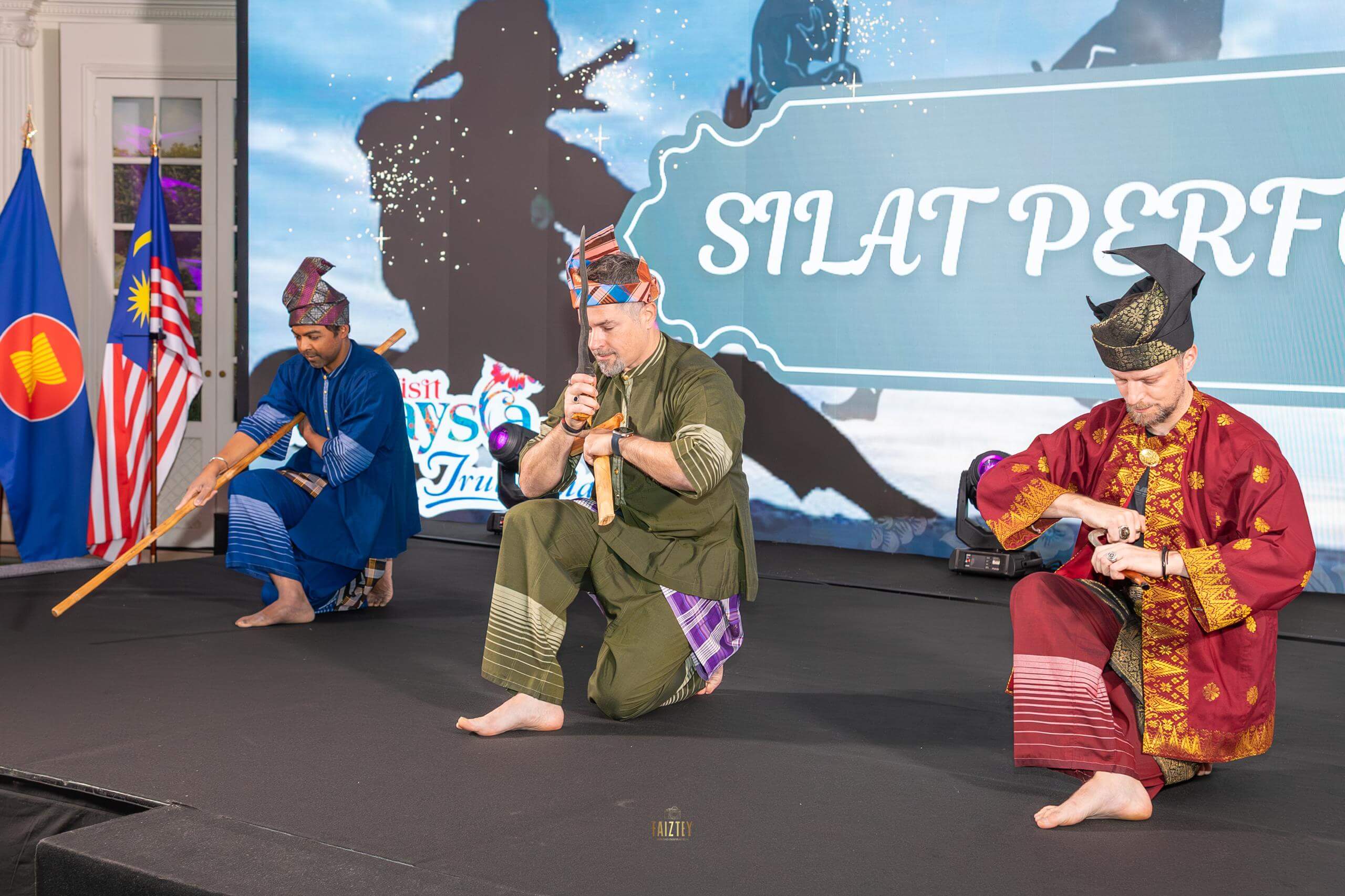 Outre la démonstration de Silat, les convives ont pu assister à plusieurs danses présentées par le élèves de Cikgu Mohd Hanafi Bin Rosdi, un concert de Sapeh (instrument à corde originaire de Sarawak) joué par M. Eugene Kuek Padan, un défilé de tenues de la créatrice de mode Mme Lynda Chew, une tombola et un buffet de cuisine malaisienne. Tout ceci, sous le regard des mascottes du programme Visit Malaysia 2026 : le couple d’ours malais Wira & Manja 😉